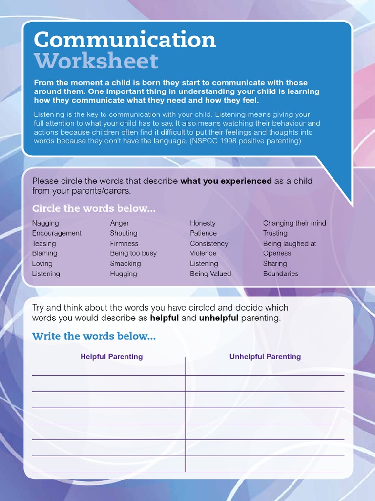 Parenting Skills Worksheets Parenting Parenting Skills Work
